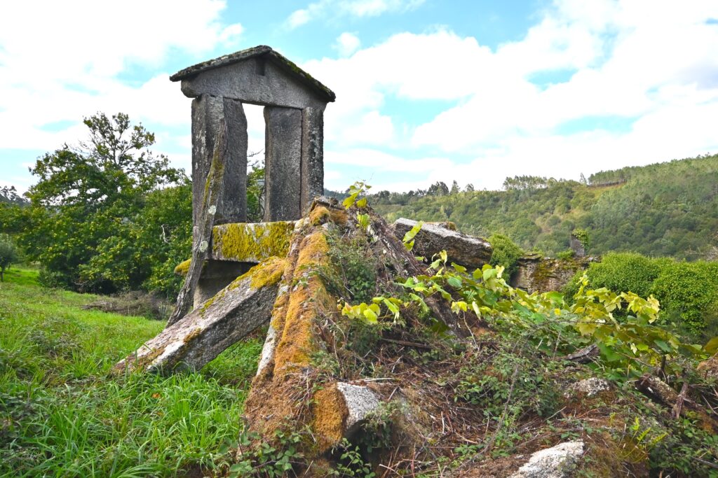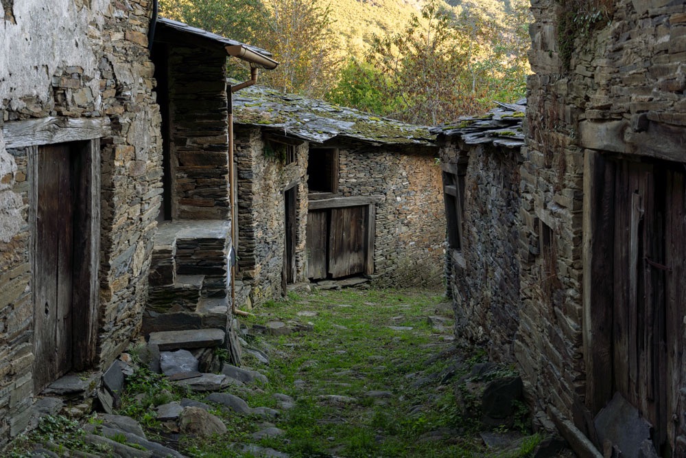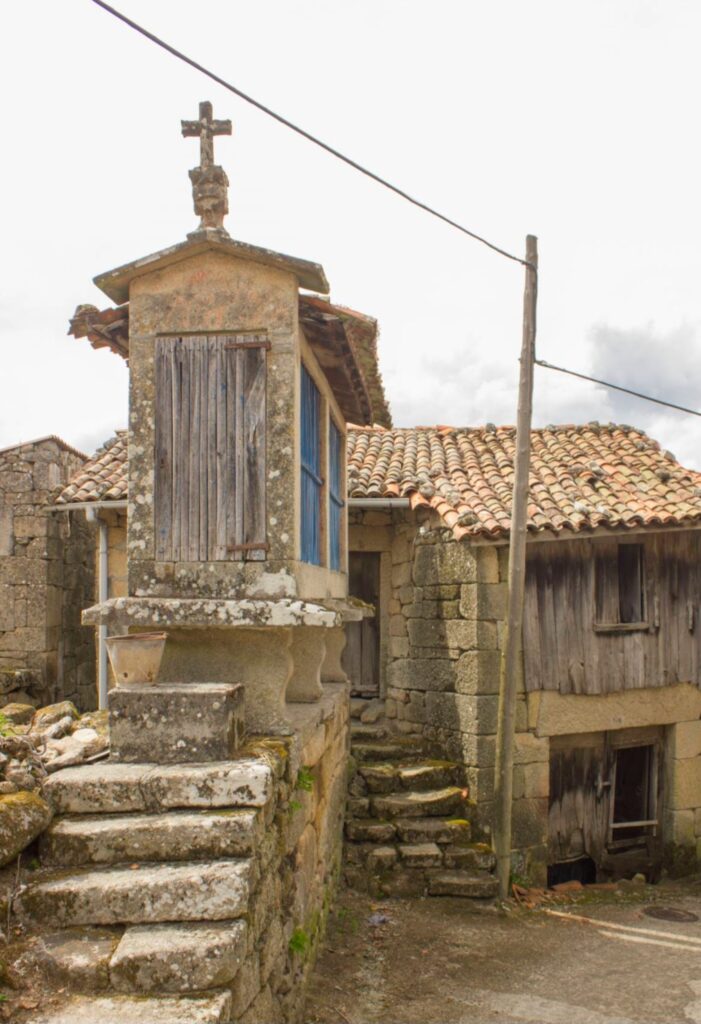 We mgle porannej można zobaczyć sylwetki kamiennych domów o dachach zarosłych mchem. Ścieżki, którymi kiedyś wędrowały muły i ludzie niosący kukurydzę lub drewno, zarosły paprociami. Na niektórych placach wciąż stoją hórreos – charakterystyczne galicyjskie spichlerze na kamiennych podporach – czasem pochylone, ale nadal trwające jak pomniki dawnego rytmu życia.
