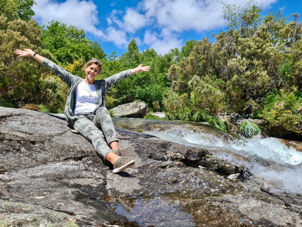 Tym razem postanowiliśmy skoncentrować się wyłącznie na wodospadzie Fervenza de Liñares. Łatwo dotrzeć tam drogą, objazdem w prawo tuż przed dotarciem do miasta Liñares. Na końcu podjazdu znajduje się znak wskazujący, a następną rzeczą do zrobienia jest zejście po polnej drodze o dość sporym nachyleniu. (Trzeba wziąć to pod uwagę, ponieważ w drodze powrotnej trzeba się na nią wspiąć). Na końcu ścieżki znajdujemy drewniany chodnik, który prowadzi do górnej części wodospadu.
