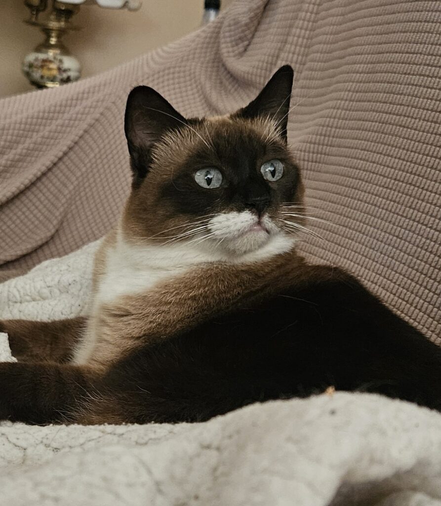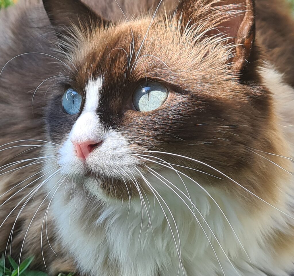 To niebieskooka, rezolutna koteczka, pełna energii i pomysłów. Od pierwszych dni wniosła do naszego domu świeżość i radość, jakby przyniosła ze sobą promień słońca. Jest bystra, odważna i niezwykle kontaktowa – zawsze pierwsza do zabawy, pierwsza do odkrywania nowych zakamarków, pierwsza do sprawdzania, co dzieje się po drugiej stronie drzwi.